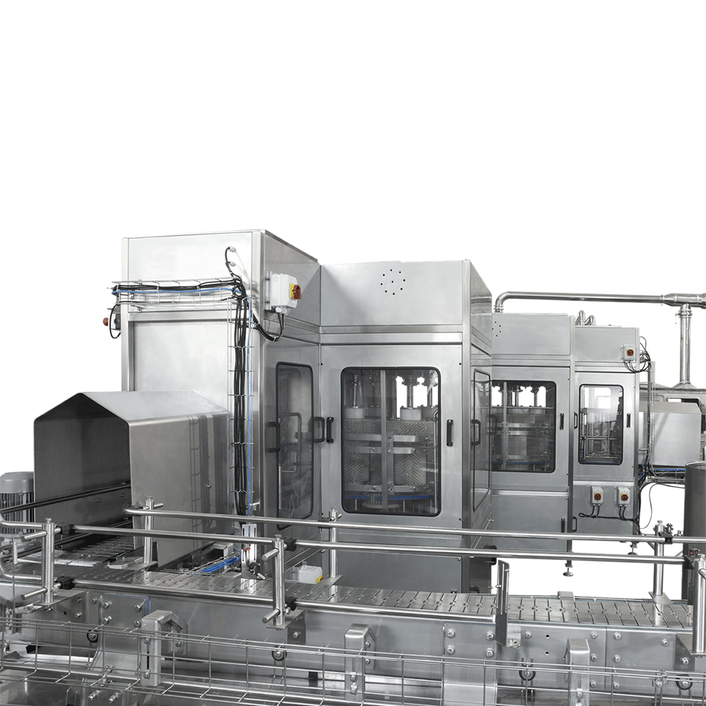 DGER系列旋轉(zhuǎn)外洗機是以旋轉(zhuǎn)結(jié)構(gòu)為基礎的桶裝水外表面清洗設備。清洗時,瓶子在外洗機內(nèi)進行公轉(zhuǎn)與自轉(zhuǎn),并通過中心毛刷、邊毛刷與底毛刷所組成的立體洗刷系統(tǒng)對整個瓶子外表面進行360°全方位洗刷。洗刷后通過網(wǎng)狀噴淋隧道進行二次噴淋清洗。通過兩種工藝的清洗徹底洗凈瓶子外壁。